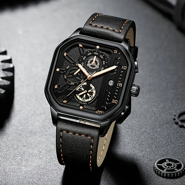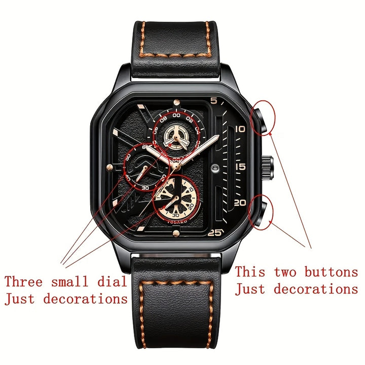 Men’s Sports Watch – Quartz Movement, Square Alloy Case, Calendar