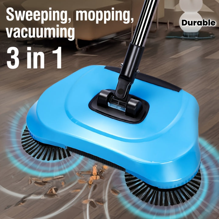 3in1 Manual Broom and Vacuum Combo with Long Handle - Automatic Deep Cleaning System, Sweeping, Mopping, Vacuuming - for Hardwood, Tile, Linoleum Floors - Ideal for Kitchen, Office, Living Room, Bedroom - Space-Saving Cleanin