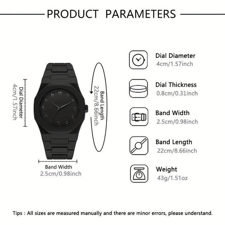 4pcs Men’s Luxury Watch Gift Set – Quartz Movement, Modern Black