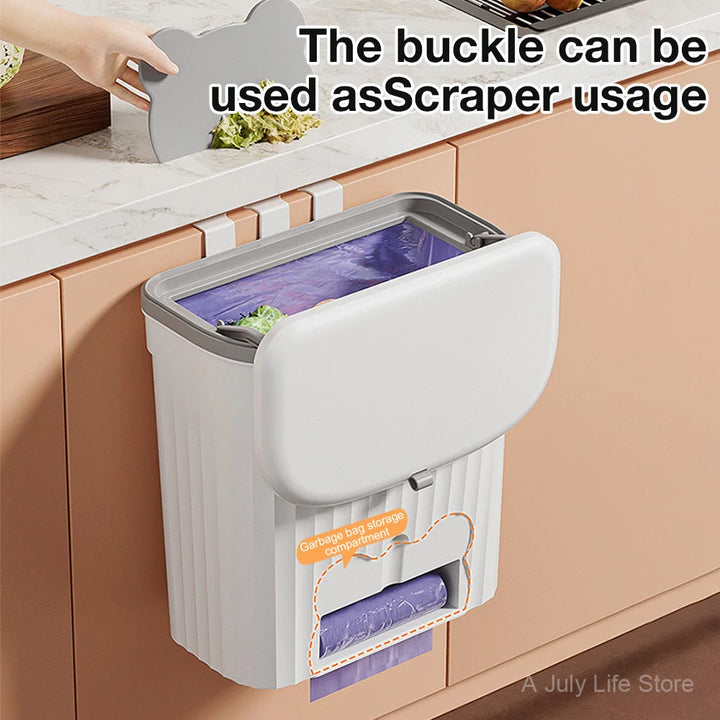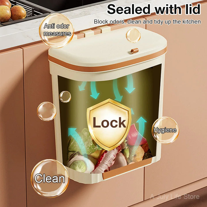 8.5/12L Kitchen Wastebasket Wall Mounted Trash Can With Lid Bathroom Trash Bin Garbage Can for Cabinet Under Sink Compost Bin