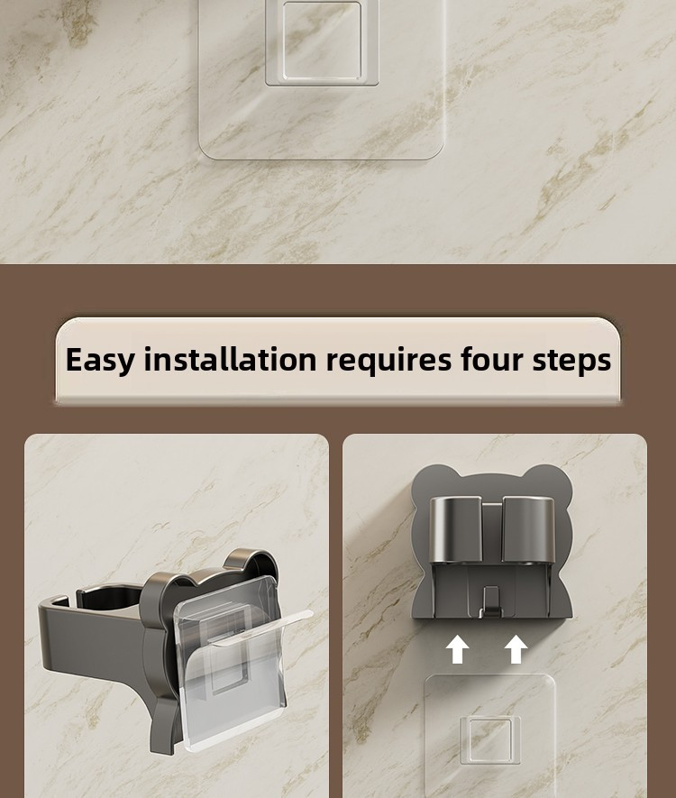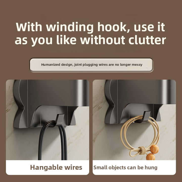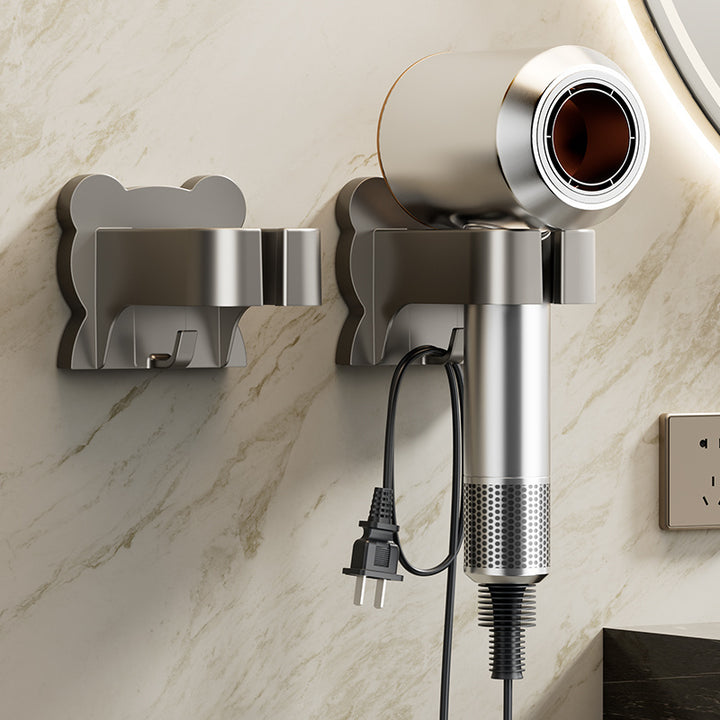 Space-Saving Wall-Mounted Hair Dryer Holder - No Drilling Required, Easy Installation, Compatible with Various Hair Dryer Models for Home & Bathroom Organization, Sleek Black Design with Metallic Accents, Durable Plastic Cons